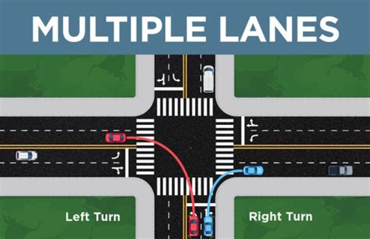 “Turn from the lane that is closest to the direction you want to go and turn into the lane closest to the one you came from. “If there are signs or lane markings that allow for two or more turning lanes, stay in your lane during the turn.”