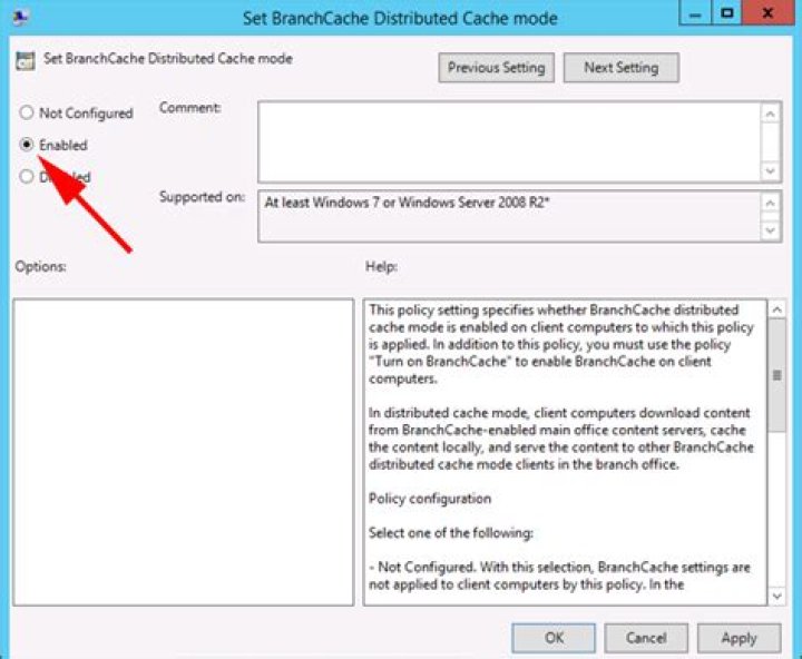 In Windows PowerShell, review the output of the Get-BCStatus command. The value for BranchCacheIsEnabled should be True.