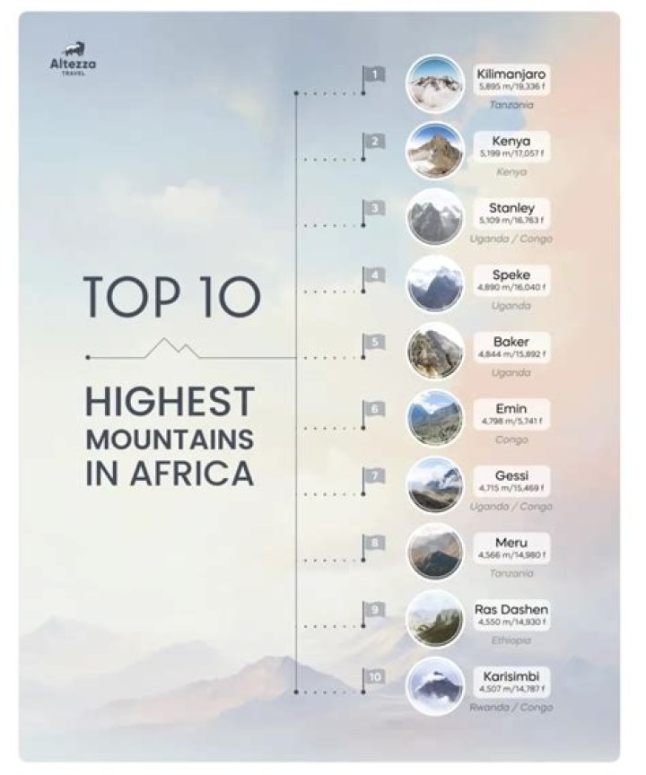 Mount Stanley is the mightiest among the Rwenzoris and is the third highest on our list of mountains in Africa.
