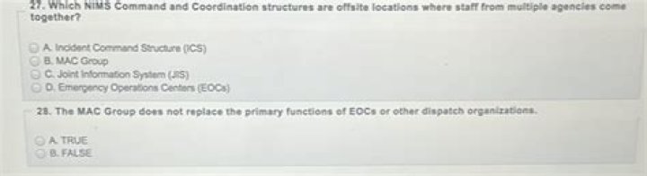 Weegy: The NIMS Command and Coordination structures are offsite locations where staff from multiple agencies come together are called Emergency Operations Centers (EOCs).