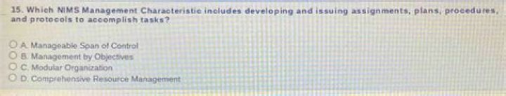 Among the Management characteristic of the NIMS, Management by objectives is responsible for developing the assignments and it also issues the assignments which are made to achieve certain important tasks. It makes plans and protocols which are the rules and regulations required to accomplish the tasks.