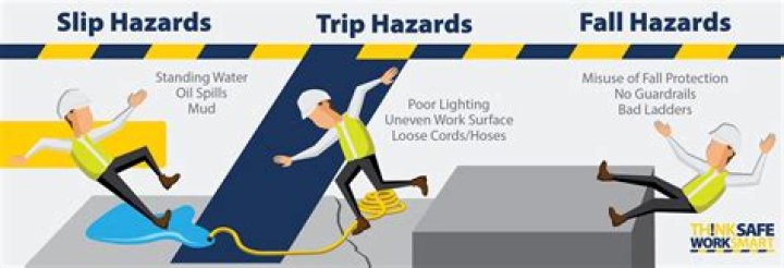 Cords lying on the ground or other walking areas.Water, oil, lubricants or other liquids spilled on the ground or on elevated areas at the site.Materials (pallets, boxes, etc.) Materials stored near ladders or in machine traffic areas.Poor lighting in walking or working areas.
