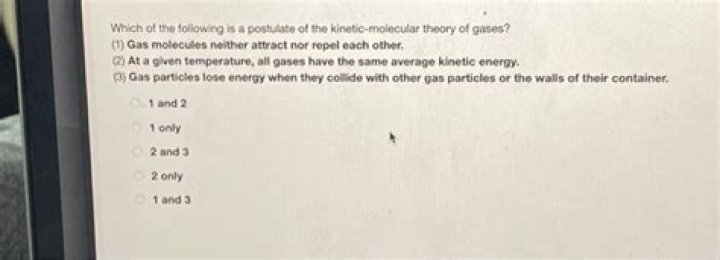Which is a postulate of the kinetic-molecular theory? Gas particles have a small volume relative to the spaces between them.
