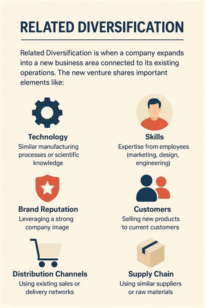 A related diversification is one in which the two involved businesses have meaningful commonalties, which provide the potential to generate economies of scale or synergies based upon the exchange of skills or resources.