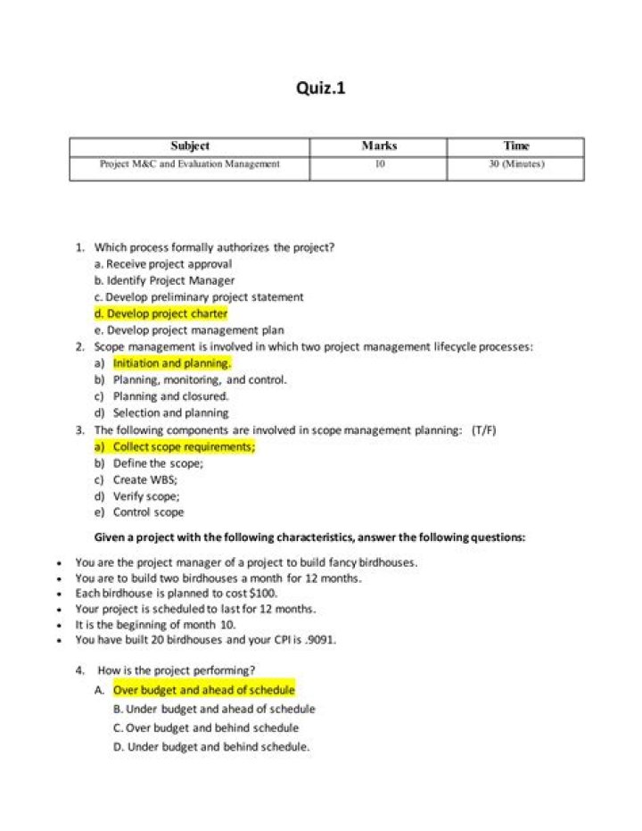 Answers: D – Develop project charter process formally authorizes the project and identifies the project manager.