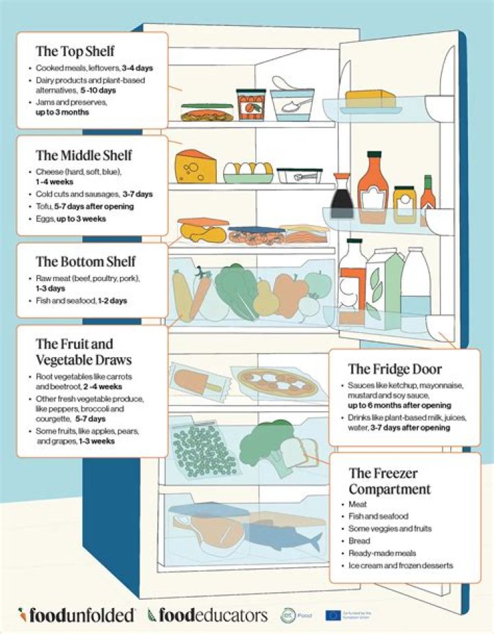 The top shelf of your fridge should be reserved for foods that have already been cooked, or don’t need cooking, as it’s the second warmest part of the fridge, after the door shelves. Cooked meats, dinner leftovers, snacks etc are best kept on the top shelf. Beers and ciders like it on the top shelf too.