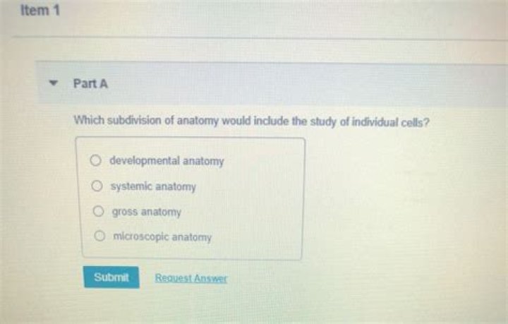 Which subdivision of anatomy would include the study of individual cells gross anatomy microscopic anatomy systemic anatomy?