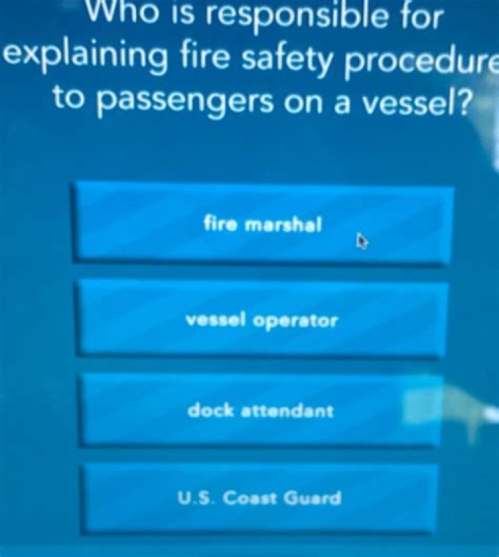 Who is responsible for explaining fire safety procedures to passengers on a boat boat Ed?