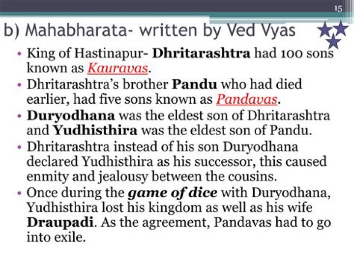 Vichitravirya, Second son of King Santanu and fisher-girl Satyavathi; Legal father of Dhritarashtra and Pandu. Vidura, Son of a palace girl (in the palace of Satyavathi) with Vyasa. Pandu’s younger brother. One of the few who did not participate in the Great War.