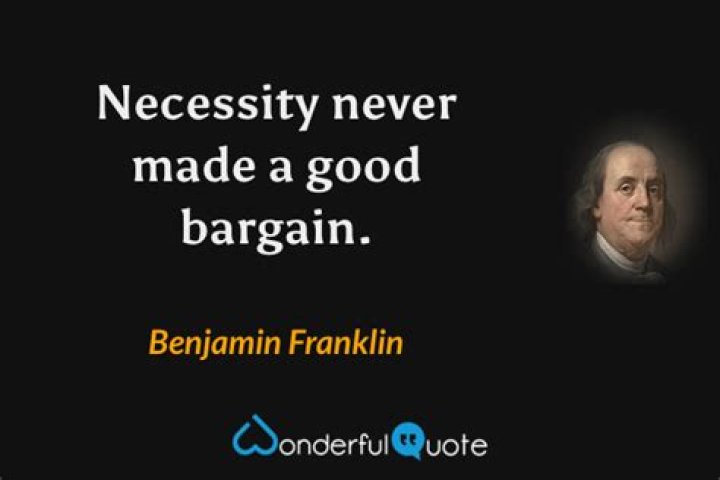 : : : 6- Necessity never made a good bargain. when the person with whom you trade knows that you are desperate, you are not going to be given a good deal and probably a bad one.