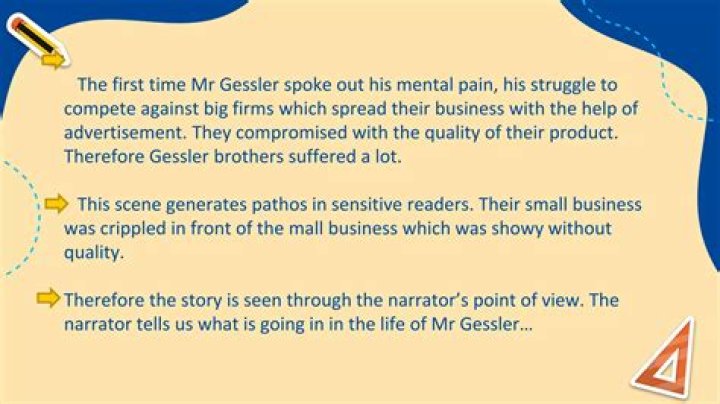 Gessler’s shop who told the narrator about Mr Gessler’s struggle and his failure due to lack advertisement, ultimately his death due to starvation.