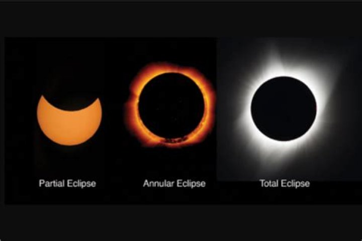There are four types of solar eclipses: total, partial, annual and hybrid. Total solar eclipses happen when the sun is completely blocked by the moon.