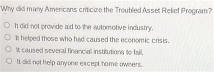 Why did Americans criticize the Troubled Asset Relief Program quizlet?
