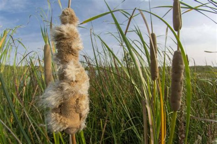 In the fall, cattails send energy down to their shallow rhizomes, producing an excellent source of food starch. The ribbonlike leaves die, but the brown flower heads stand tall. They may look as dense as a corn dog, but give them a pinch and thousands of seeds explode into the air.