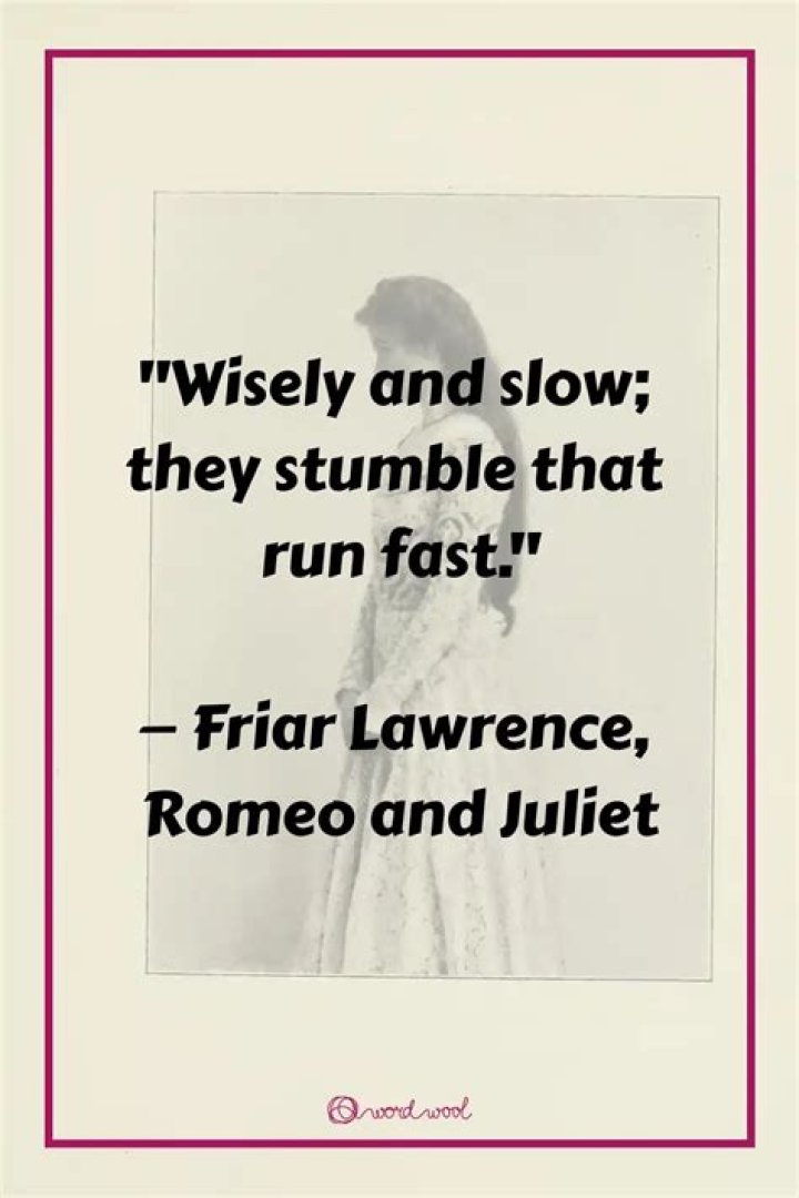 At the end of Act II, scene iii, just after he has agreed to marry Romeo and Juliet, Friar Lawrence offers Romeo the following advice: Wisely and slow; they stumble that run fast.