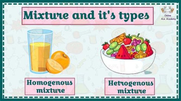 Vinegar is an example of a homogeneous mixture of acetic acid and water. Heterogeneous means “different throughout.” A heterogeneous mixture has large parts that are different from each other. You can see the different parts of a heterogeneous mixture. Oil in water is an example of a heterogeneous mixture.