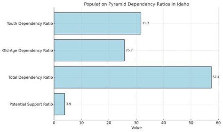 Age Dependency ratios provide you with the ability to gain insights into the age structure of an area. Higher ratios indicate a greater level of dependency on the working-age population. The US ADR is 62.5 for 2019, or roughly 62 dependents for every 100 workers.
